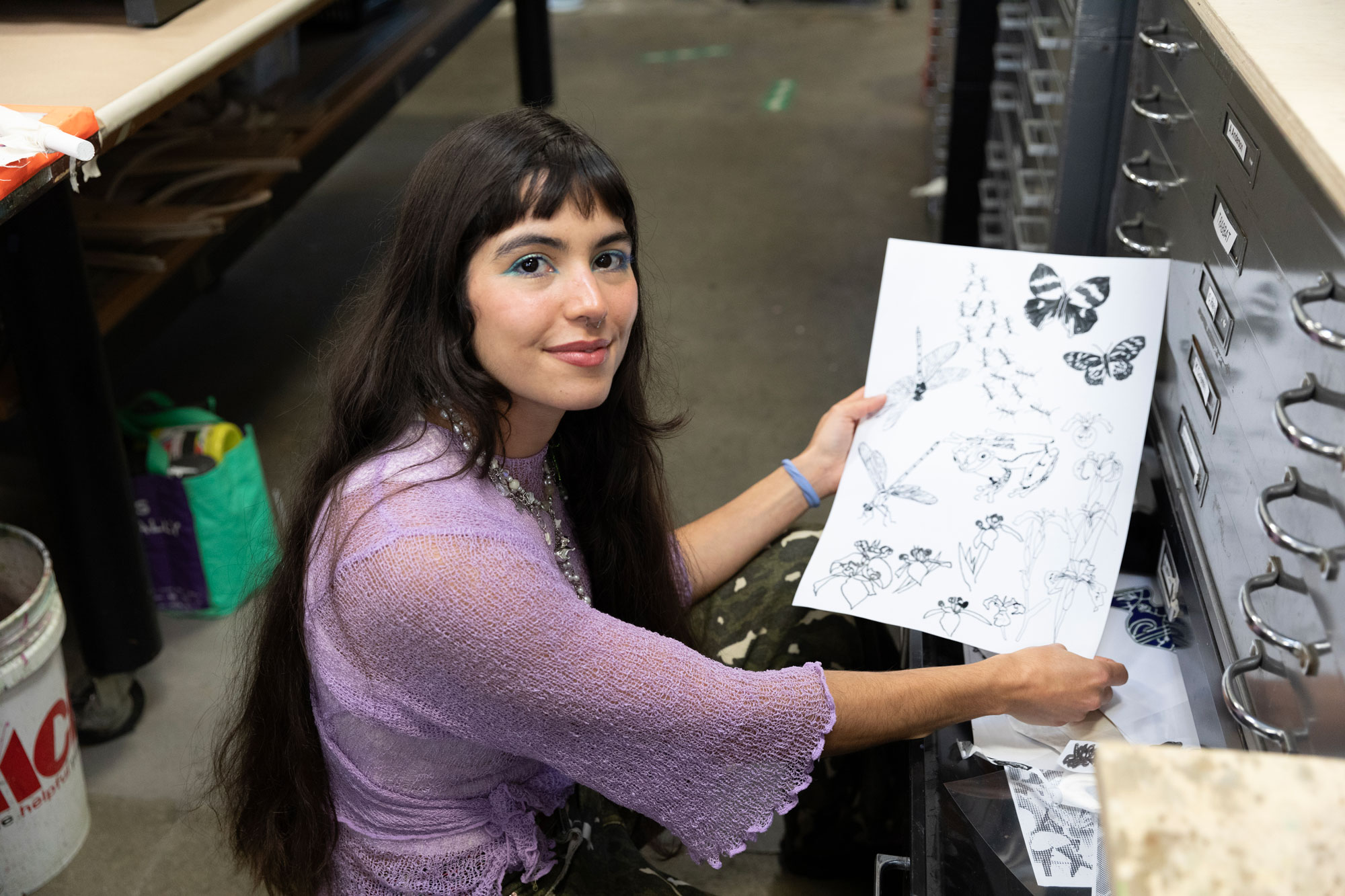 Drawn to visual art from a young age, María began her artistic studies at the Universidad de Los Andes in Mérida and later received her BA with Honors from the University of Washington. In 2022, María completed a screenprinting apprenticeship at the Fabric Workshop and Museum in Philadelphia to further develop a new area of artistic interest with textiles. This apprenticeship allowed her to explore the possibilities of screen printing on a massive scale and cemented her love of this medium.