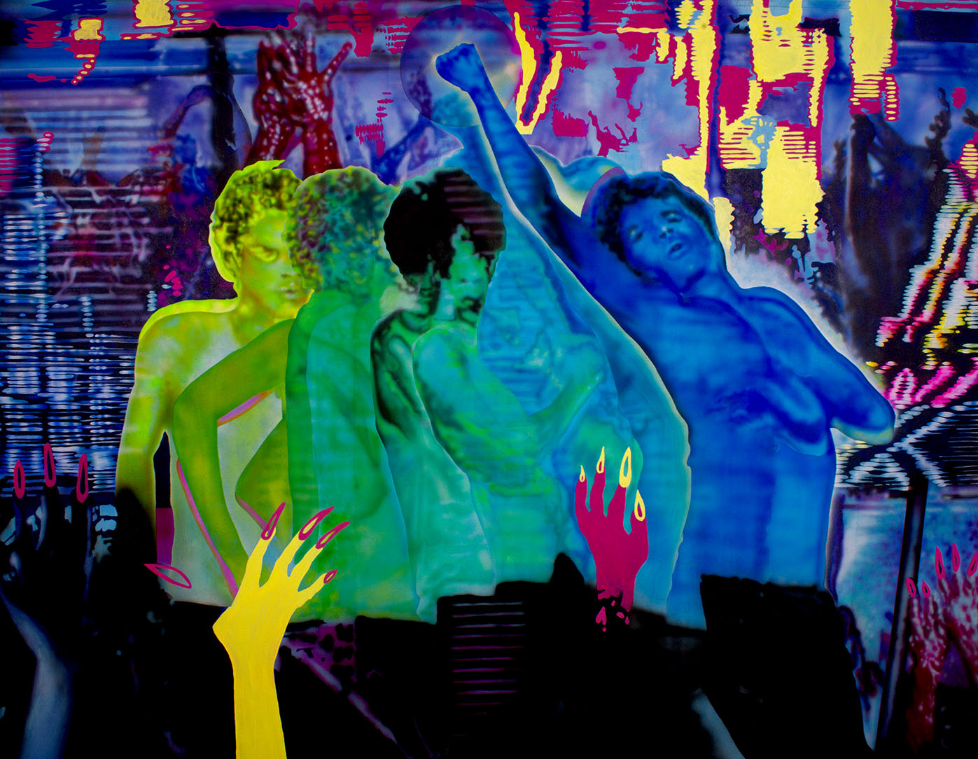 Chloe King. Dancing My Way to Drexciya, 2026. Acrylic and UV reactive pigment on canvas. 60 x 72 in. Courtesy of the artist
