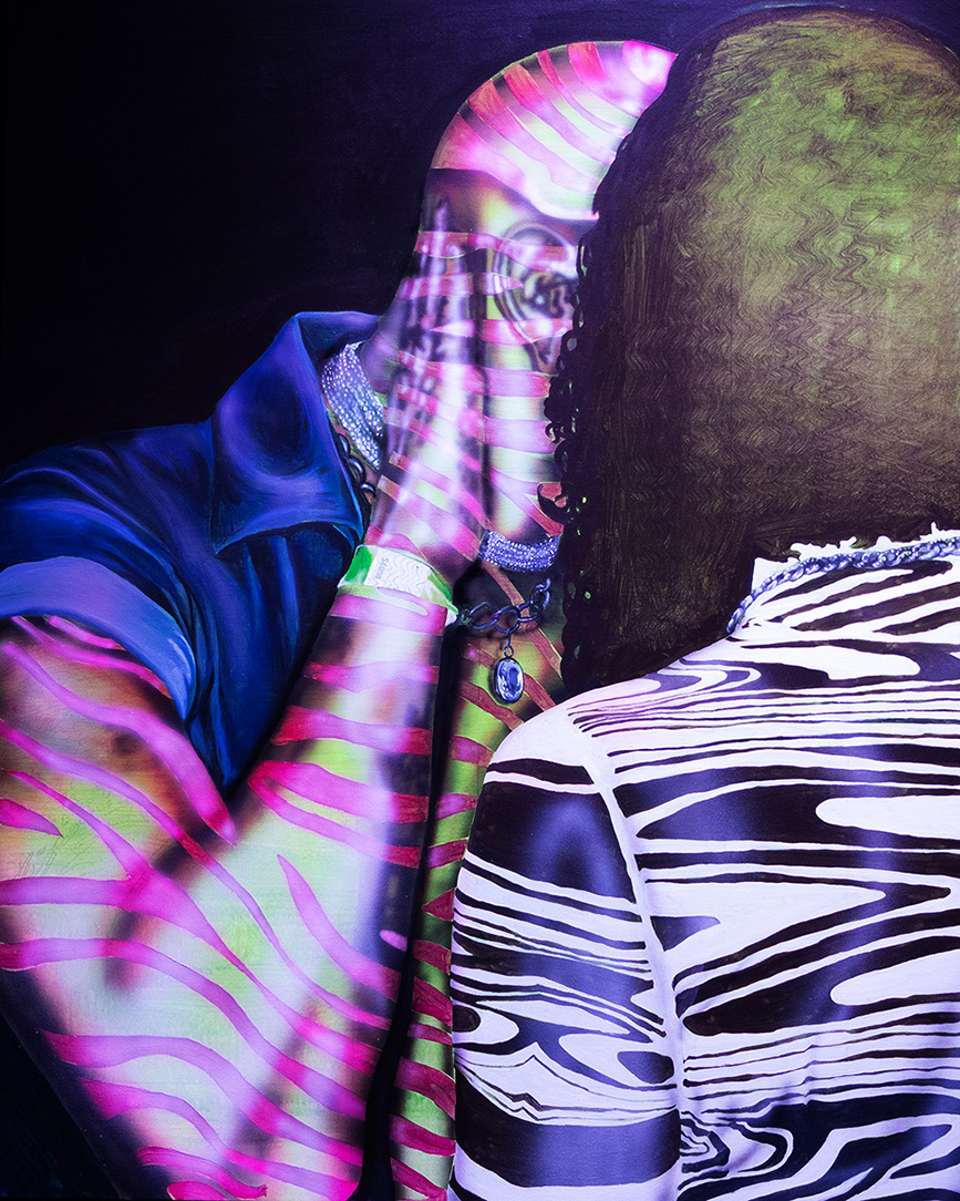 Chloe King. Spill, 2024. Acrylic and airbrush on canvas. 60 x 72 in. Courtesy of the artist. Photo: Chloe King