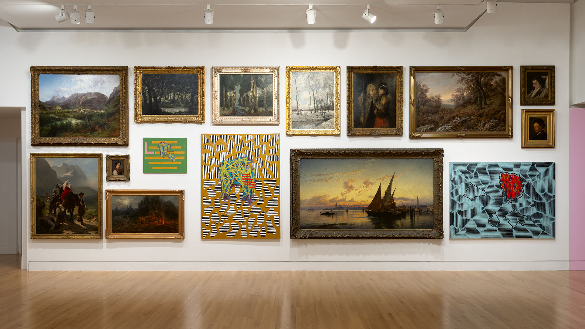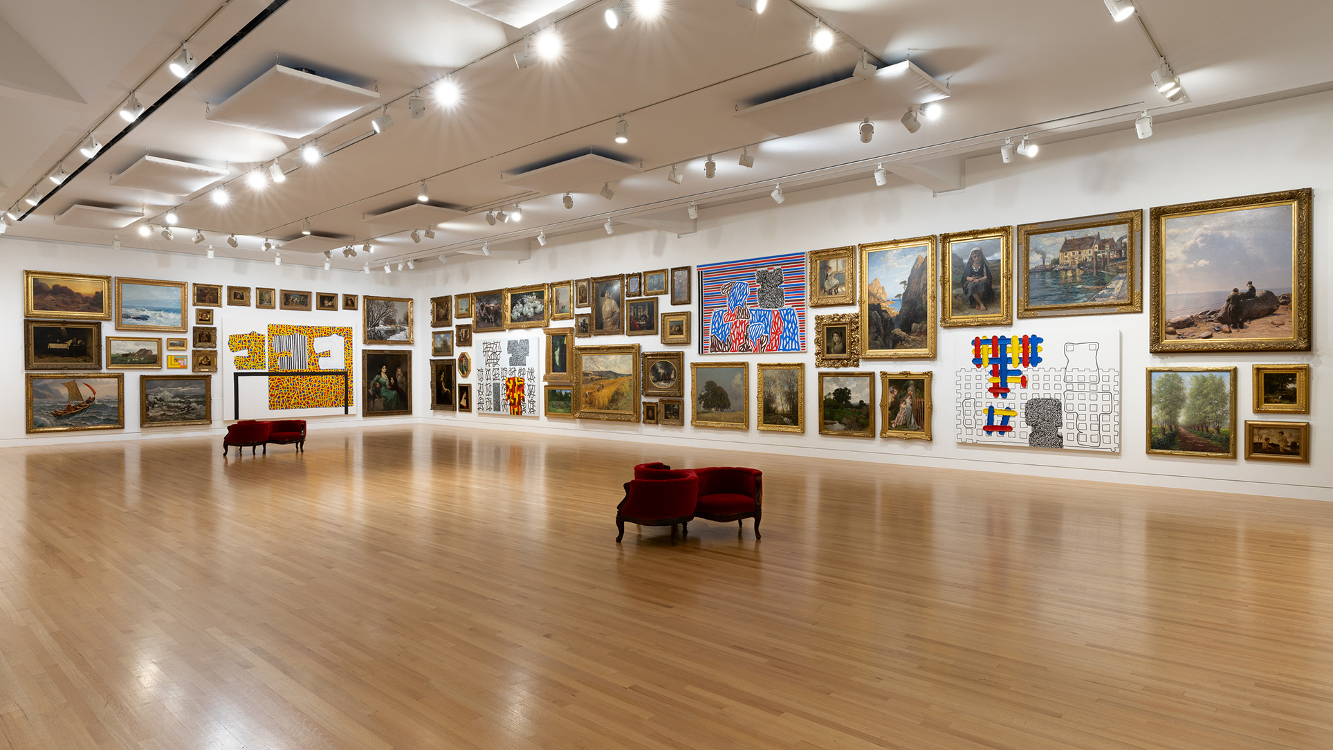 The museum periodically places living artists in direct dialogue with this dynamic salon-style installation. In Frye Salon + Jonathan Lasker, a selection of large canvases by the contemporary American painter—subject of the concurrent exhibition Drawings and Studies—intermingle with the featured collection works. Known for his bold visual language of biomorphic forms and distinctive use of line, Lasker uses the familiar tools of representational painting—figure and ground, space and perspective—to destabilize the dividing line with abstraction. Situated among the works of Frye Salon, his vibrant, evocatively titled compositions open unexpected conversations across time, style, and painterly intent.